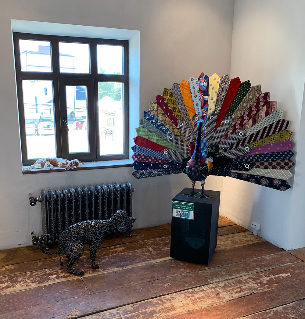 Приятно сообщить, что нашему МУзею тоже нашлось место в арт-пространстве «Домика Счастья»: «Павлин-Мавлин» из старых галстуков и два «цепных пса» из велосипедных цепей будут представлять проект на протяжении ближайшего месяца и демонстрировать посетителям возможности техники объемного ассамбляжа и прикольность треш-скульптур.